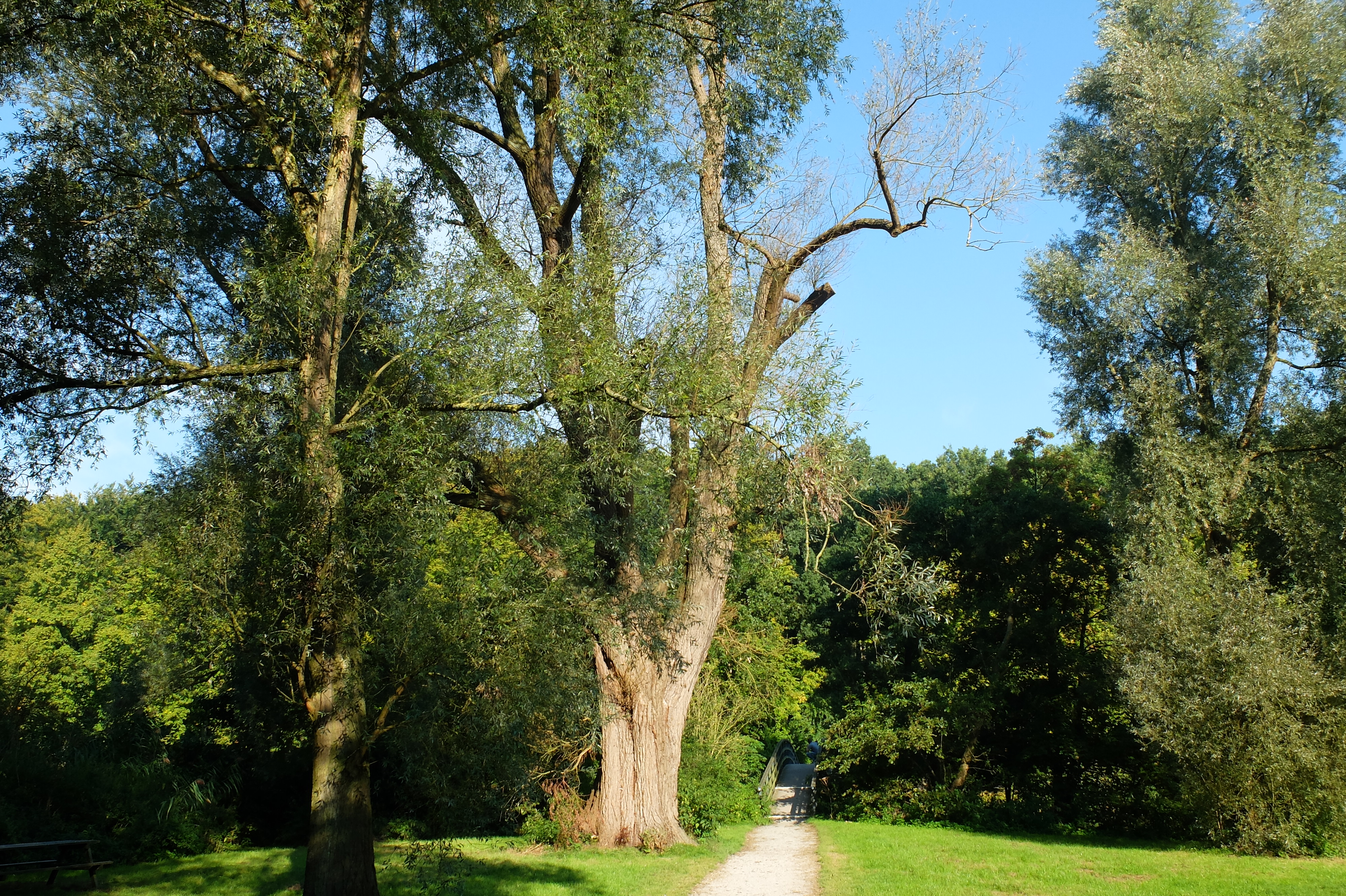 Old trees in the park. Note the old tree having lost many branches, yet strong and full of life.