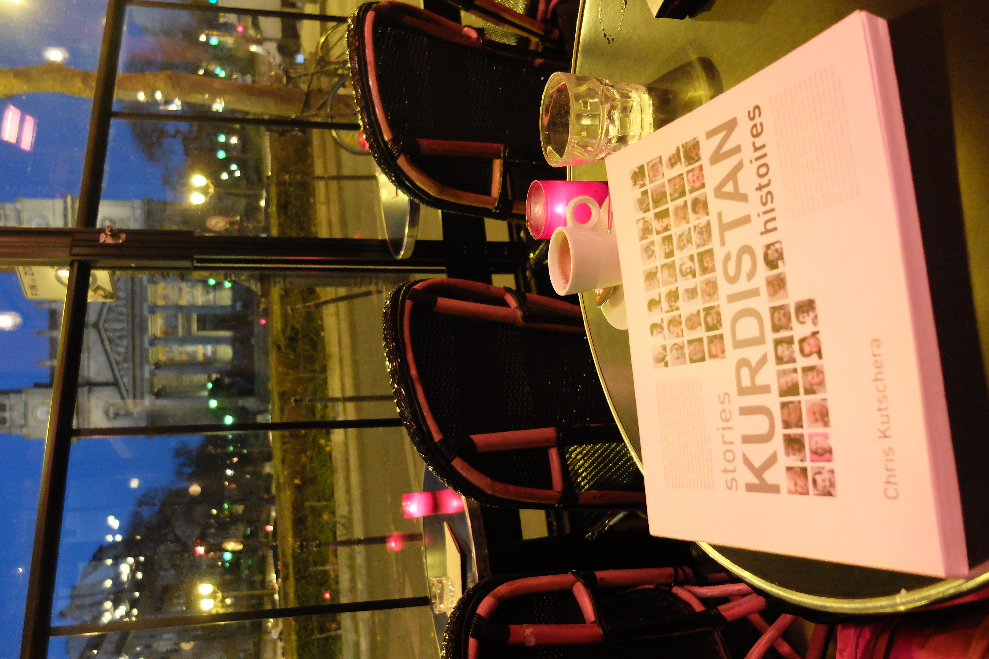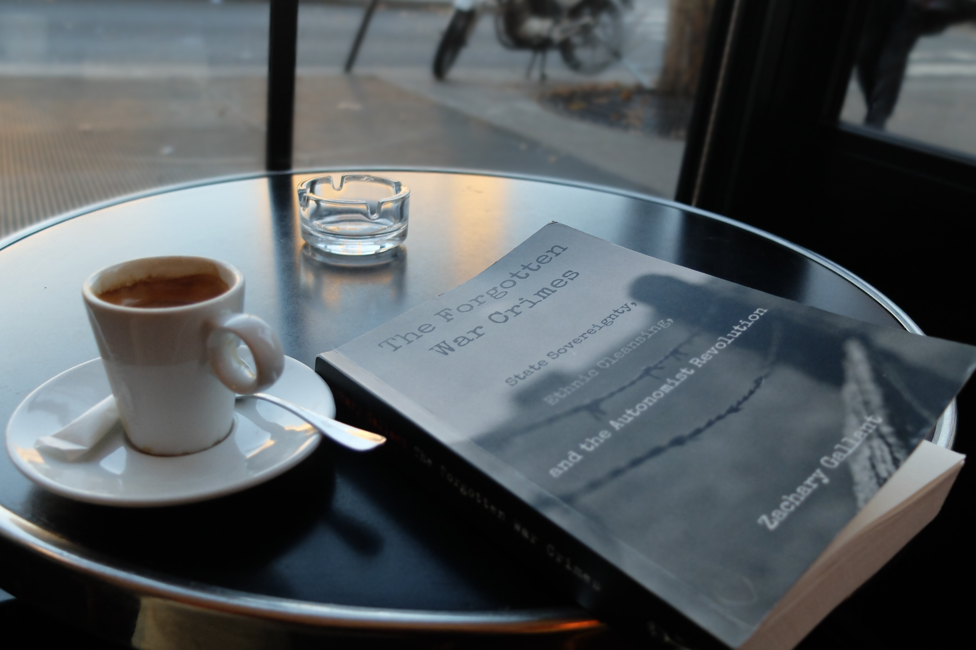 During a cup of coffee. Note the book on war crimes, a theme Kavien was very concerned with.