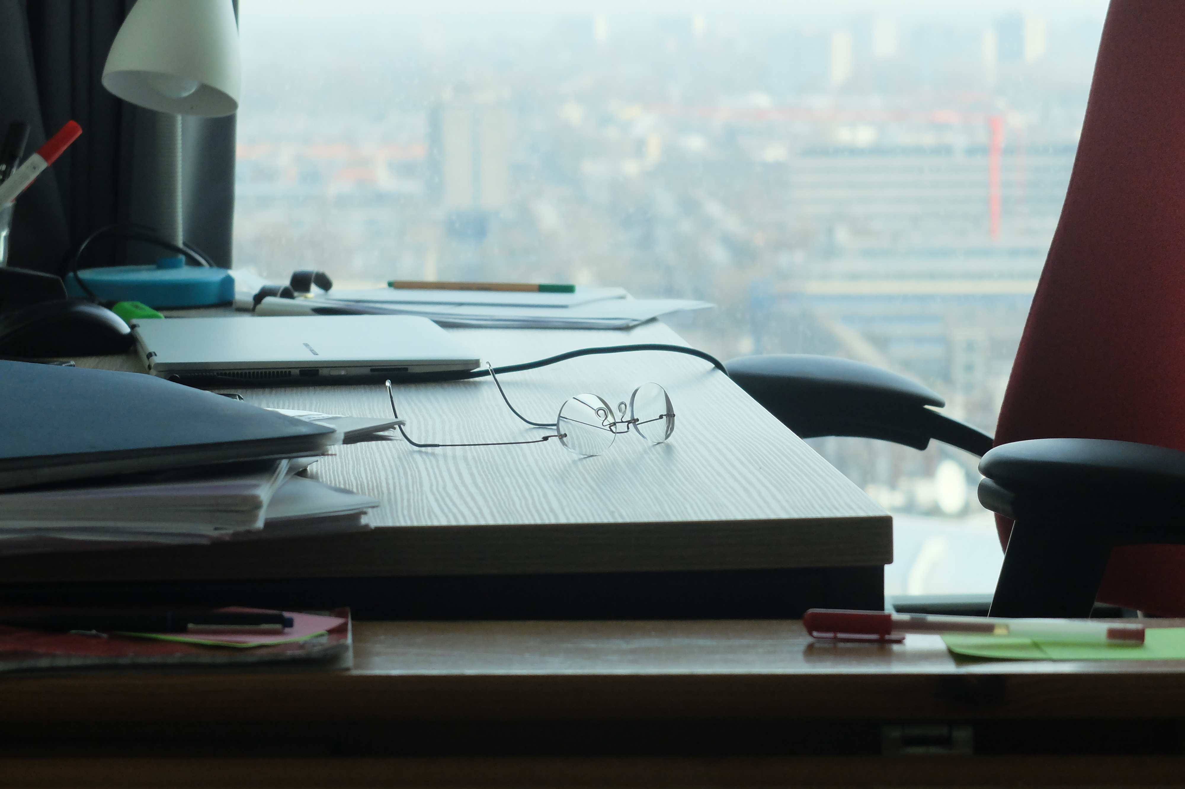 Kavien's worktable in The Hague.