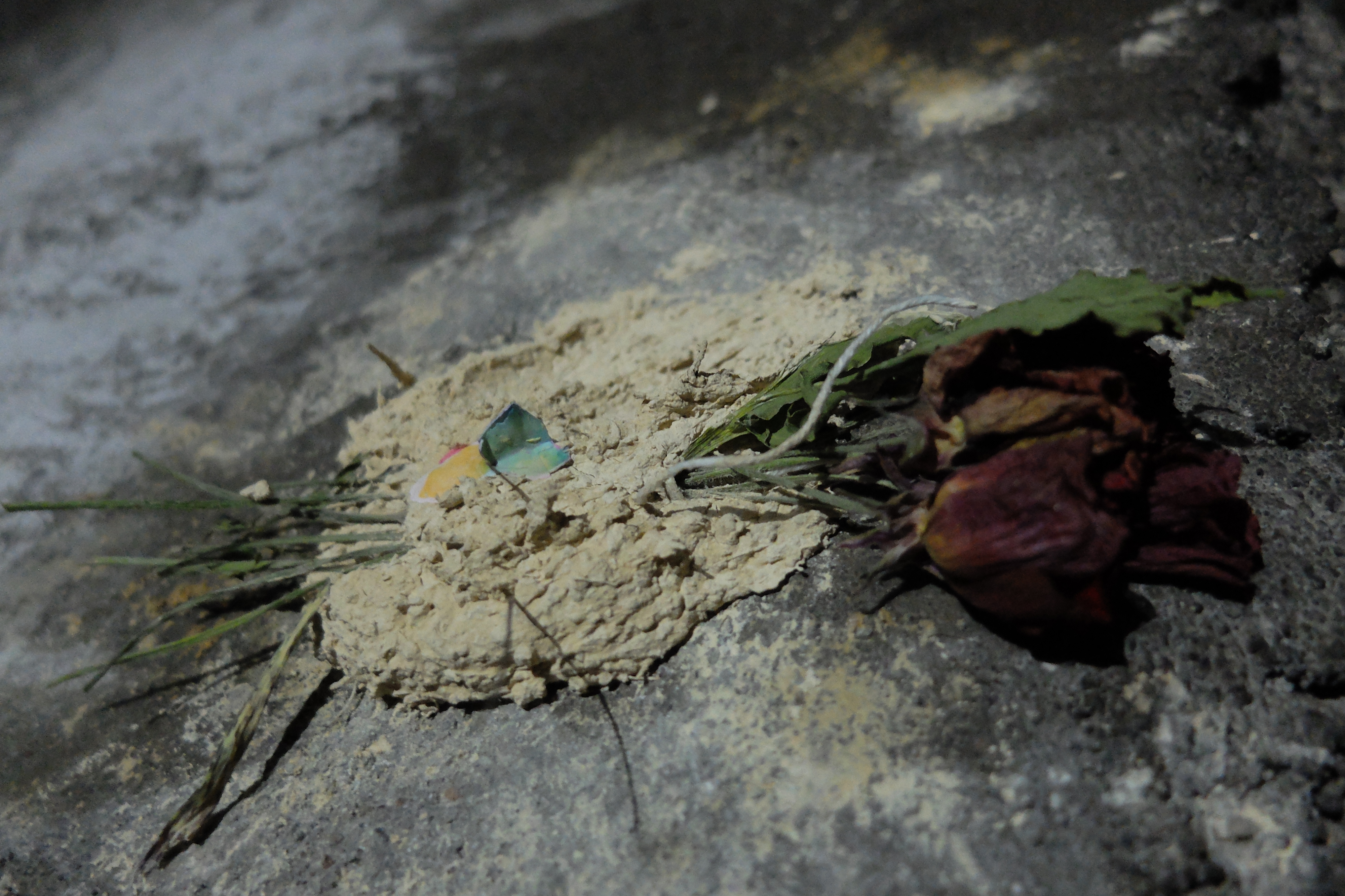 Dried flowers on a wall near the cave of the wishing stone of the Lalish temple.