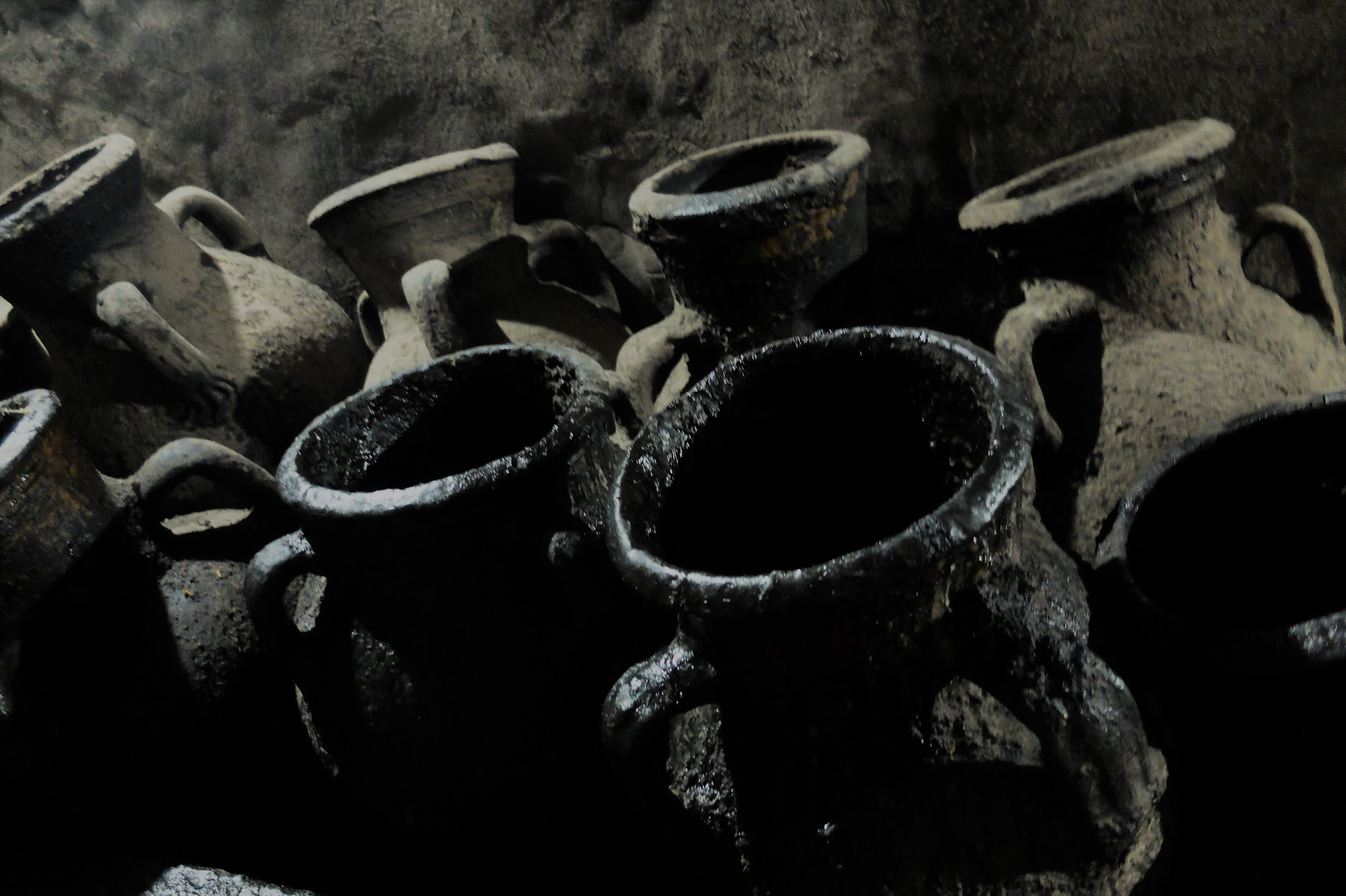 Vessels inside the cave of the wishing stone of the Lalish temple.