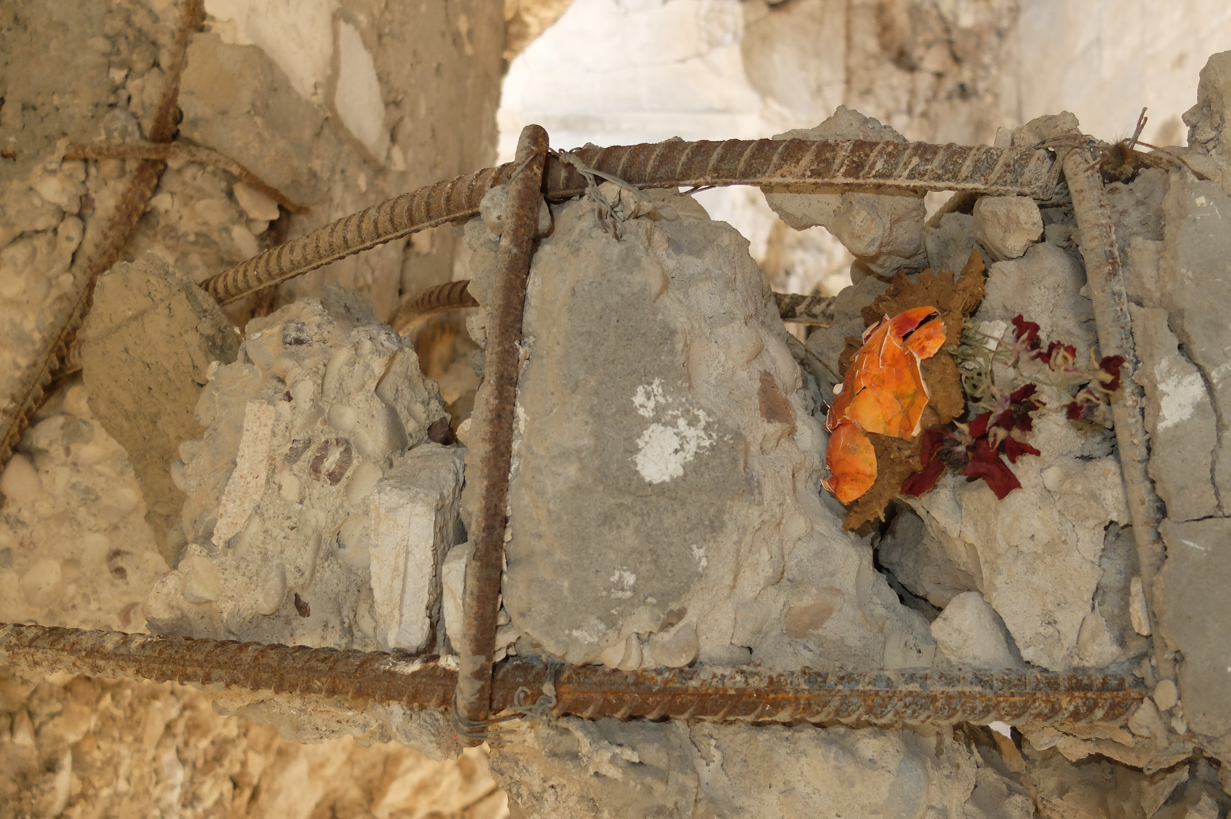 Flowers in one of the houses demolished by the regime, left unaltered since, as a sign of respect.