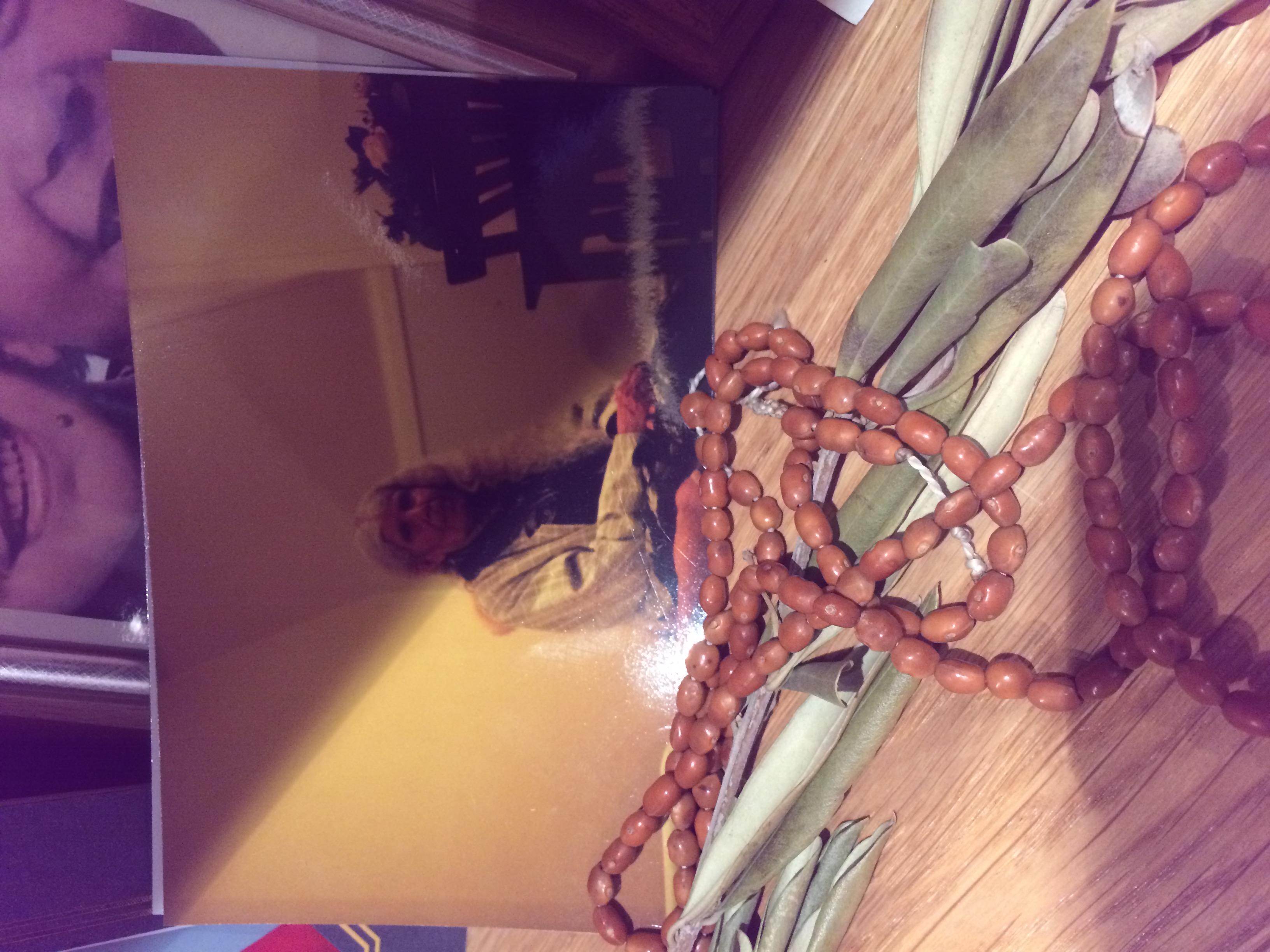 Photo of Kavien's grandmother with olive leaves and her prayer beads.