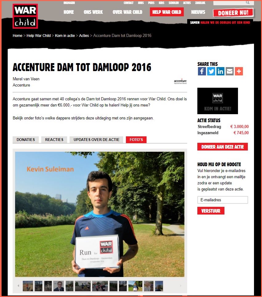This page is about Kavien’s participation in two Charity Sport events in Amsterdam, viz. the Dam tot Damloop Run for War Child on 2016, Sept. 18, and the Marathon for VluchtelingenWerk which took place on 2017, Oct. 15. Both charities were close to Kavien’s heart, as he aimed making contributions to world peace and justice on as many occasions as possible.