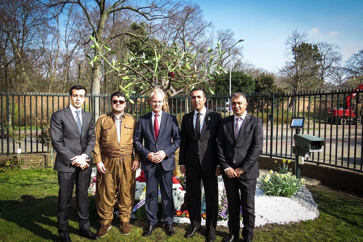 In front of the OPCW building in The Hague, near the Halabja monument.