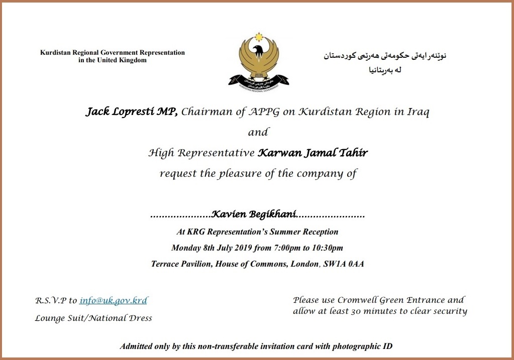 from the High Representative to the United Kingdom of the Kurdistan Regional Government.