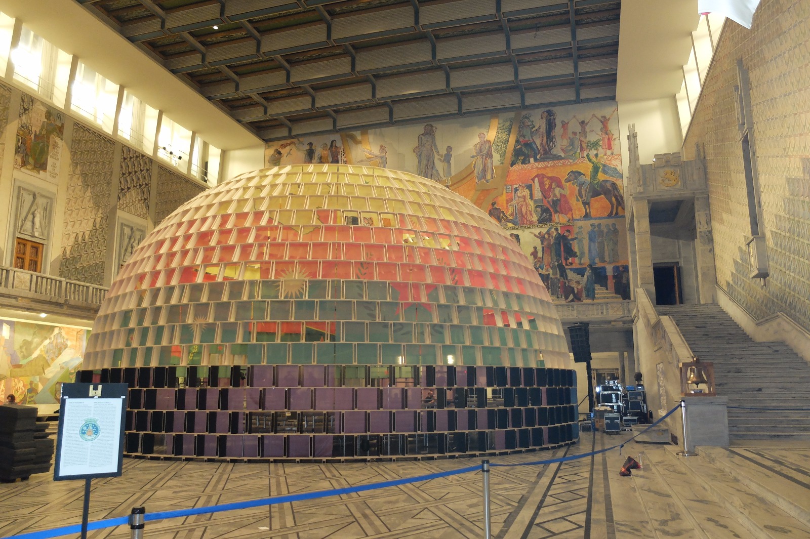 The photo shows the dome inside the main hall of the Nobel Peace Center.