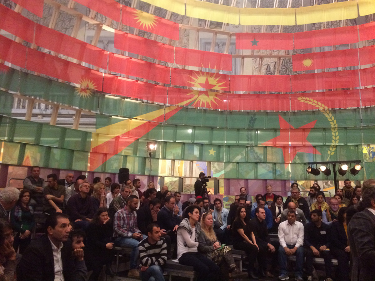 This is a an “Embassy”, operating for two consecutive days, bringing representatives from Rojava together with international politicians, diplomats, academics, journalists, students, artists, and more. Through open deliberation and public discussion the New World Embassy: Rojava proposes a platform to build new transnational relationships and explore alternative models of people’s diplomacy. For more info, see the document