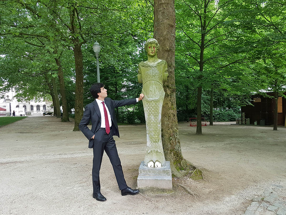 Statue “Herme” by Laurent Delvaux in Brussels Park (red eyes probably by protest artist Anne Wetsi Mpoma).